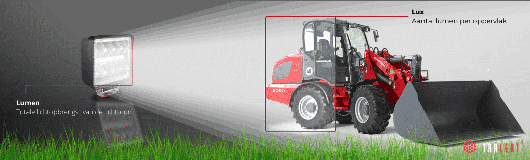 Lux is de Latijnse betekenis voor licht. Ook dit is een graadmeter die de kracht van het licht in kaart brengt. Het is eigenlijk het aantal lumen per oppervlak: 1 Lux staat gelijk aan 1 lumen per m2. In de afbeelding hieronder is het verschil tussen de twee graadmeters in kaart gebracht. Lux is een meer betrouwbare graadmeter voor lichtopbrengst dan lumen omdat dit de lichtopbrengst in kaart brengt waar de goede LED werklampen naar toe schijnen.
