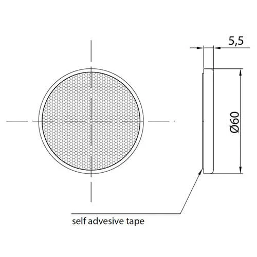 De Fristom VRF-100A is een ronde reflector met een diameter van 60 mm en een dikte van 5,5 mm. Deze reflector is geschikt voor universele toepassingen op voertuigen ter verbetering van de zichtbaarheid en passieve veiligheid. Dankzij de plakmontage met 3M-hechtstrip is installatie op vlakke ondergronden eenvoudig uit te voeren zonder aanvullende bevestigingsmaterialen.