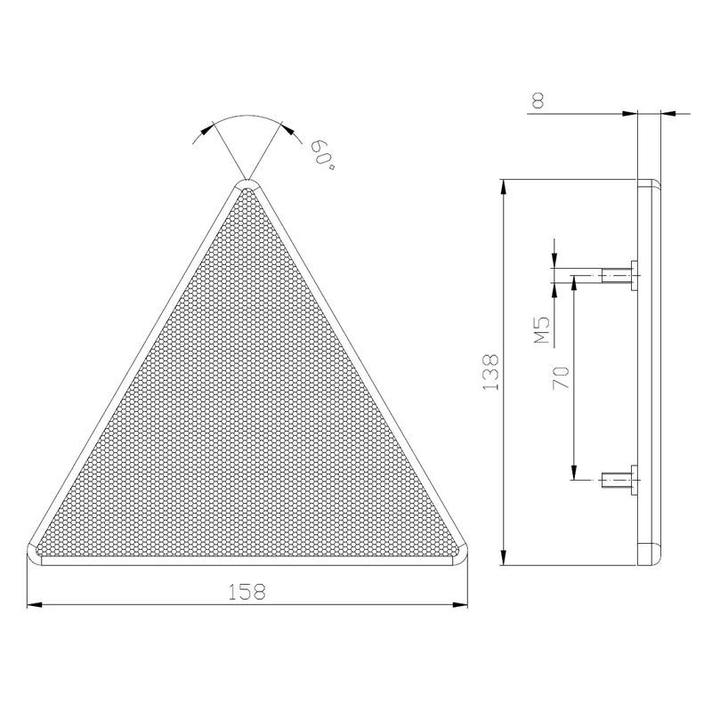De Fristom VRF-400R is een driehoekige reflector binnen de productgroep reflectoren. Dit model is ontworpen voor schroefmontage en heeft afmetingen van 158x158x158 mm. De reflector draagt bij aan verhoogde zichtbaarheid van voertuigen en aanhangers, met name in het donker of bij slechte weersomstandigheden. Dankzij de behuizing van polycarbonaat is dit product bestand tegen stoten en invloeden van buitenaf.