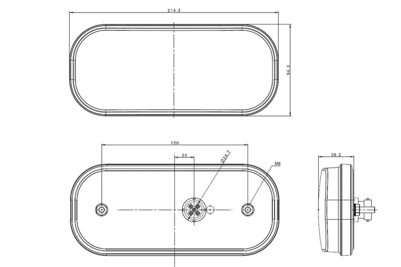 Dit LED achterlicht combineert de functies: achterlicht, remlicht, knipperlicht, dynamisch knipperlicht, achteruitrijlicht en kentekenverlichting. De afmetingen van 214,3 x 94,3 x 36,2 mm maken het geschikt voor montage op plekken met beperkte ruimte. Dit model is IP68-gecertificeerd en voldoet aan de normen CE, ECE-R10, ECE-R3, ECE-R7, ECE-R6, ECE-R23 en ECE-R4.