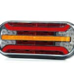 Dit LED achterlicht uit de Fristom 600-serie is ontworpen voor toepassingen op voertuigen met een spanningsbereik van 12–24 V. Het product combineert de functies: achterlicht, remlicht, knipperlicht, achteruitrijlicht en kentekenverlichting. De opbouwconstructie en de afmetingen van 220 x 100 x 50,5 mm maken montage eenvoudig, zowel horizontaal als verticaal. De behuizing en lens zijn vervaardigd uit polycarbonaat, wat bijdraagt aan de slagvastheid en duurzaamheid van de unit.