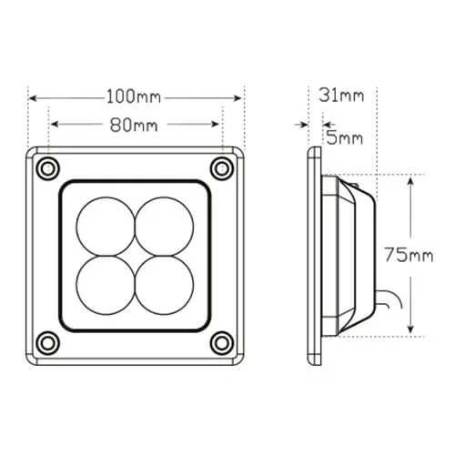 De LED werklamp uit de 7312 serie van LED Autolamps is ontworpen voor inbouwtoepassingen waar beperkte inbouwdiepte vereist is. Dankzij het compacte ontwerp van 100 x 100 x 5 mm en de behuizing en lens van polycarbonaat is deze werklamp geschikt voor integratie in uiteenlopende carrosserieonderdelen. Het model levert een lichtopbrengst van 660 lm bij een verbruik van slechts 025 W en is inzetbaar binnen een spanningsbereik van 12–24 V.