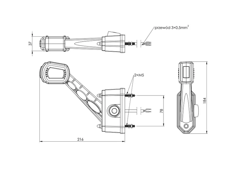 Deze LED breedtelamp uit de MBA-2700 serie van Horpol is ontworpen voor voertuigen met een boordspanning van 12–24 V. De behuizing is vervaardigd uit rubber, met een lens van slagvast polycarbonaat voor een duurzame montage. Door de opbouwconstructie en een kabellengte van 150 cm met open draadeind is een flexibele installatie mogelijk aan de linkerzijde van voertuigen.