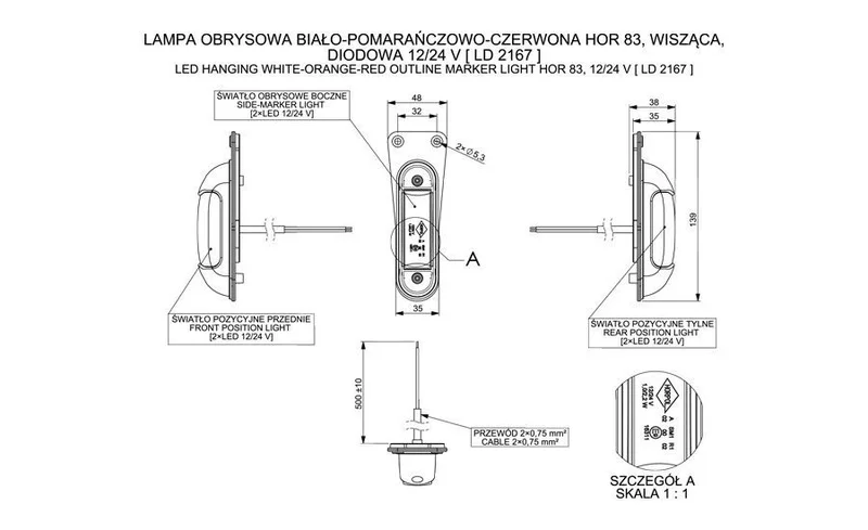 Deze LED breedtelamp uit de MB-5300 serie van Horpol is ontworpen voor montage aan de rechterzijde van voertuigen met 12–24 V elektrische systemen. Dankzij de combinatie van rode, witte en amberkleurige LED’s dient de lamp zowel als achter markeerlicht en zij markeerlicht. Met een compacte afmeting van 139x38x48 mm is deze breedtelamp geschikt voor toepassingen met beperkte inbouwruimte.