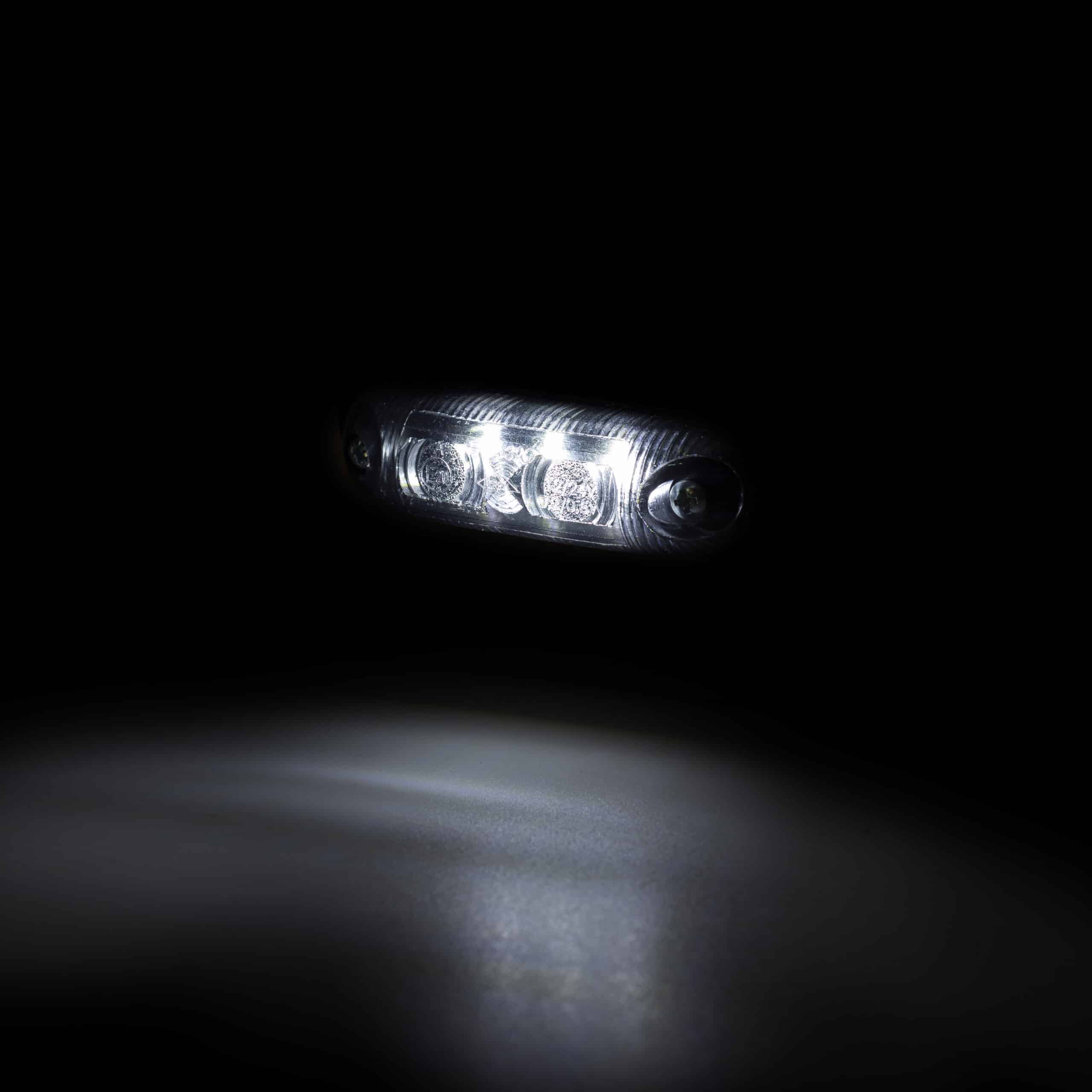 Dit witte LED markeringslicht uit de MV-4000 serie van Horpol is geschikt voor voertuigen met een spanningsbereik van 12–24 V. Het model is uitgevoerd in een slanke, slagvaste polycarbonaat behuizing en beschikt over een geïntegreerde reflector. Dankzij de compactheid (103x30x35 mm) en het opbouwontwerp kan dit markeringslicht eenvoudig op verschillende voertuigtypes worden gemonteerd.
