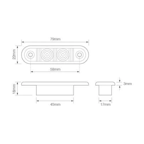 Dankzij de IP67-classificatie is dit LED markeringslicht stofdicht en beschermd tegen tijdelijke onderdompeling, wat de inzetbaarheid onder uiteenlopende (weers)omstandigheden vergroot. De unit is gecertificeerd volgens CE en ECE-R10 richtlijnen, wat elektromagnetische compatibiliteit waarborgt. De compacte afmetingen van 81 x 22 x 3mm zorgen voor een discrete integratie in het voertuigontwerp.