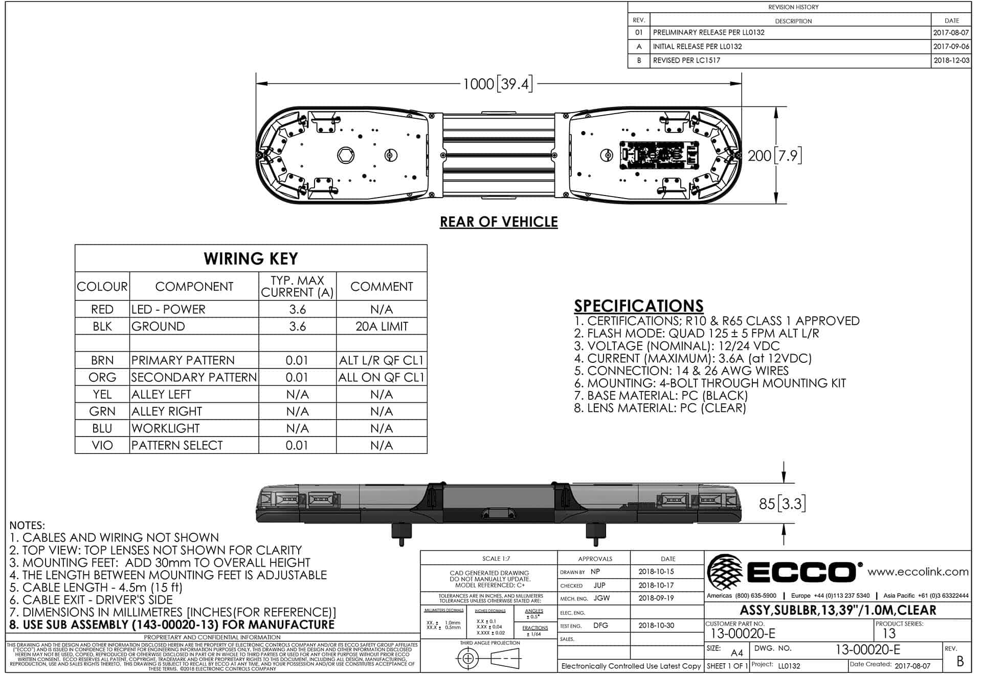 De 13 serie Ecco van ECCO ESG bevat deze LED zwaaibalk met een lengte van 1.000 mm, specifiek ontwikkeld voor gebruik op voertuigen met een boordspanning van 12–24 V. De zwaaibalk heeft een aluminium behuizing en een lens van polycarbonaat. Dankzij de vrij instelbare beugelmontage is een flexibele installatie mogelijk. De aansluiting verloopt via een open draadeind met een 450 cm lange kabel.