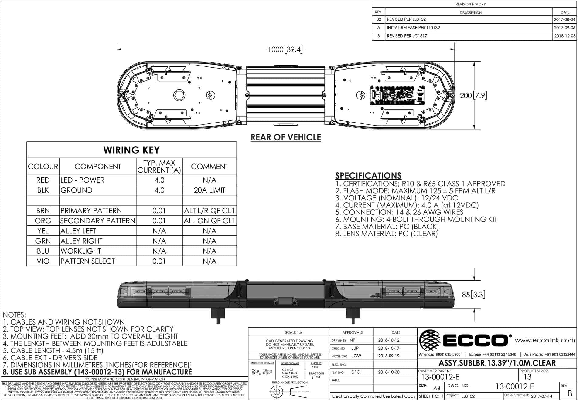 De ECCO ESG 13 serie Ecco is een LED zwaaibalk ontworpen voor voertuigen die signaleringsverlichting vereisen binnen uiteenlopende spanningsbereiken van 12–24 V. Dankzij de CE-, ECE-R10- en ECE-R65-certificering voldoet deze zwaaibalk aan relevante normen op het gebied van elektromagnetische compatibiliteit en lichtprestaties. Het robuuste ontwerp met een aluminium behuizing en een polycarbonaat lens maakt de unit geschikt voor veeleisende toepassingen.