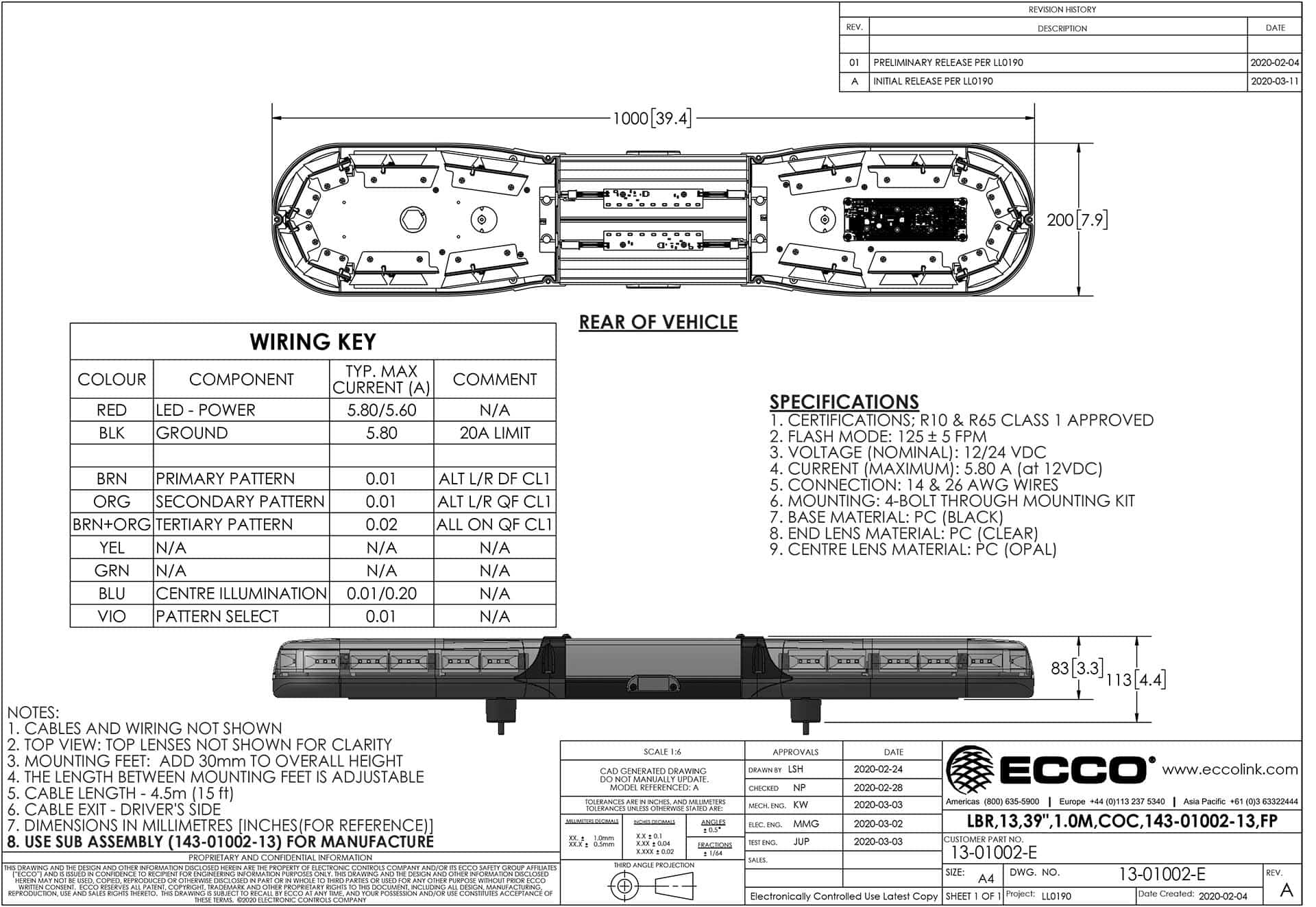 De zwaaibalk werkt op 12–24 V en is uitgerust met een 450 cm kabel met open draadeind voor elektrische aansluiting. Met afmetingen van 1000x200x85 mm past het model goed op middelgrote tot grote voertuigen. De zwaaibalk voldoet aan de CE-, ECE-R10- en ECE-R65-certificeringen, wat aangeeft dat het voldoet aan elektromagnetische compatibiliteitseisen en voorschriften voor zwaailichttoepassing.
