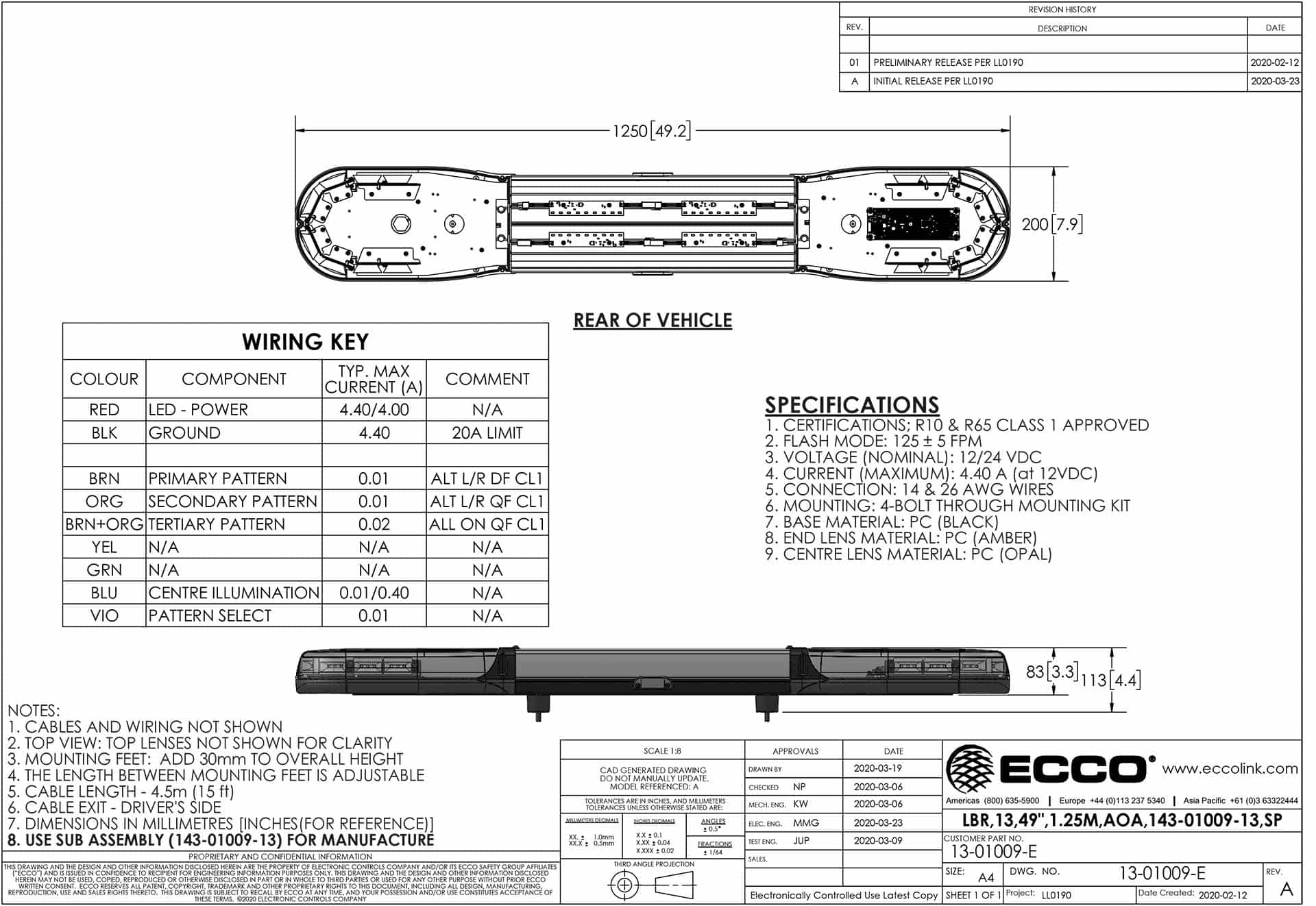 De 13 serie Ecco van ECCO ESG is ontworpen als LED zwaaibalk voor voertuigen die zichtbaarheid en signalering in uiteenlopende werkomstandigheden vereisen. Deze uitvoering met een lengte van 1250 mm is geschikt voor 12–24 V systemen en is uitgevoerd met een vrij instelbare beugelmontage, wat flexibiliteit in de plaatsing biedt. De behuizing is vervaardigd uit aluminium en voorzien van een slagvaste polycarbonaat lens.