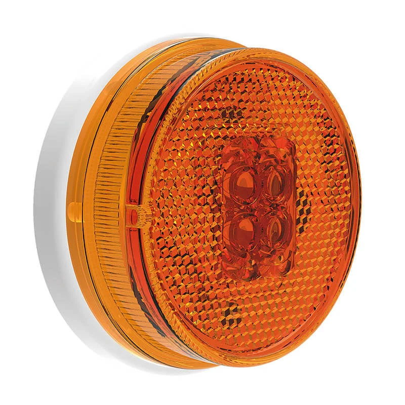 De Fristom MV-1300 serie is ontworpen als robuuste oplossing binnen de categorie LED markeringslichten. Dit compacte markeringslicht in amberkleur is uitgevoerd met een behuizing en lens van slagvast polycarbonaat en is geschikt voor een spanningsbereik van 12–24 V. Het model is voorzien van een open draadeind en standaard uitgerust met 50 cm kabel voor flexibele installatie. Dankzij de reflecterende component functioneert het tevens als reflector, waardoor het bijdraagt aan zowel zichtbaarheid als verkeersveiligheid. Dit LED markeringslicht is toepasbaar op diverse soorten voertuigen waar rondvormige zijverlichting vereist is.