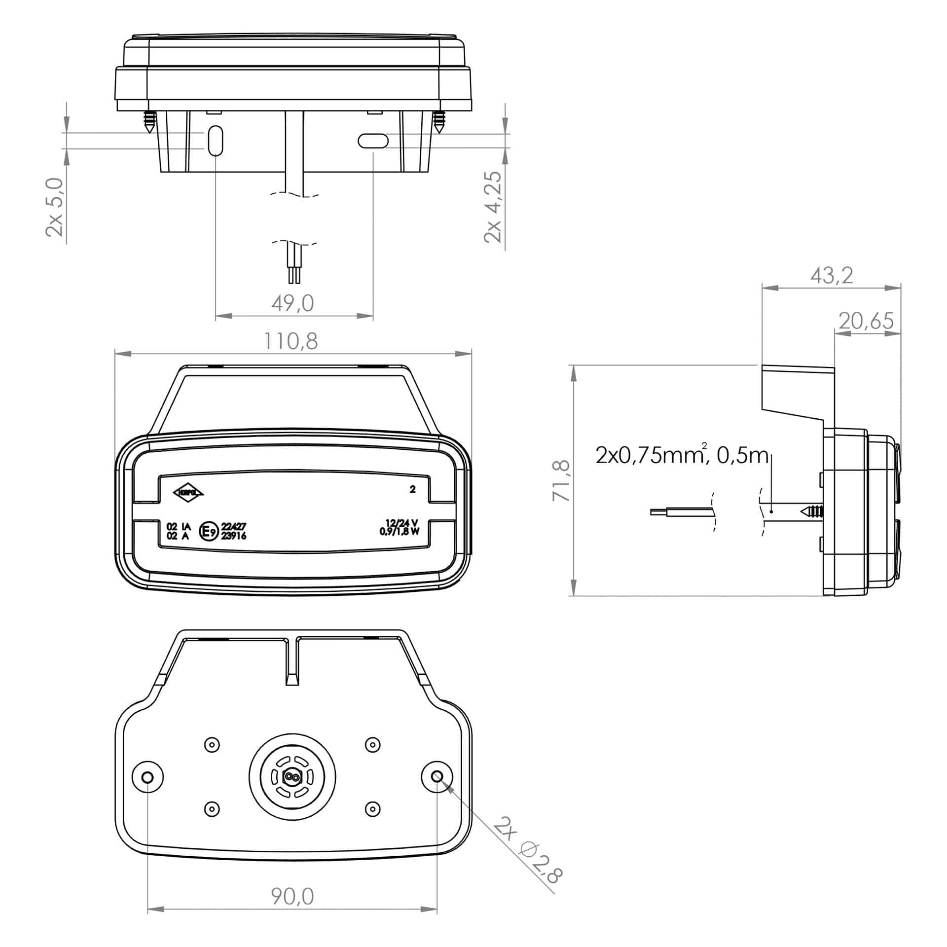 Het Horpol model MV-4950A uit de MV-4900 serie is een LED markeringslicht ontworpen voor zijmarkeringstoepassingen op voertuigen met een spanningsbereik van 12–24 V. Dit LED markeringslicht combineert de functies: zij markerlicht en reflector. Dankzij de opbouwmontage en het open draadeind met 50 cm kabel laat het zich eenvoudig installeren. De behuizing en lens zijn vervaardigd uit polycarbonaat, wat bijdraagt aan de mechanische bestendigheid en slagvastheid.