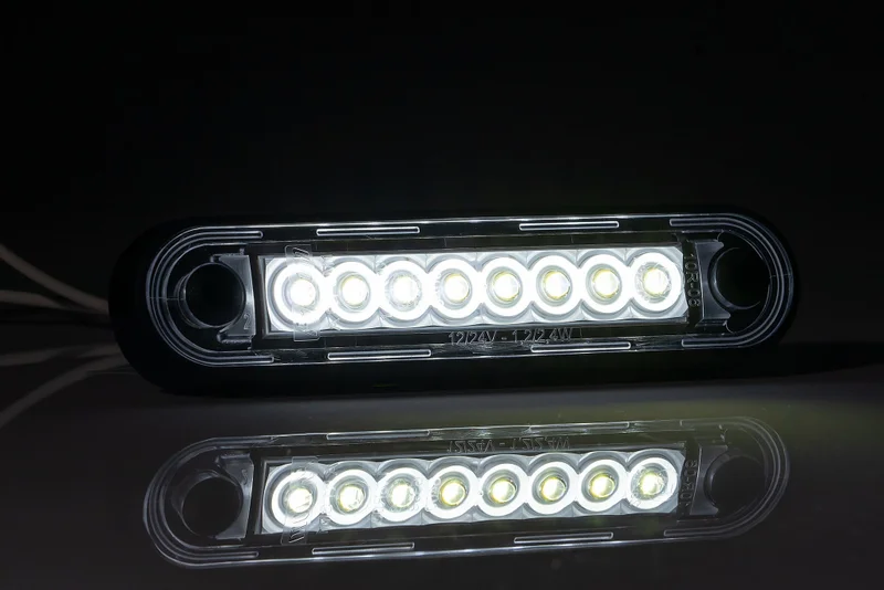 Dit witte LED markeringslicht uit de MV-2400 serie van Fristom is geschikt voor zowel 12 V als 24 V systemen. Dankzij de compacte afmetingen van 122 x 27,7 x 12,8 mm en de mogelijkheid tot inbouw en opbouwmontage biedt dit markeringslicht flexibiliteit in diverse voertuigtoepassingen. De behuizing bestaat uit polycarbonaat en rubber en de lens is eveneens vervaardigd van polycarbonaat. Het markeringslicht is voorzien van een reflectorfunctie. De aansluiting verloopt via een open draadeind met 15 cm kabel. Dit model voldoet aan de eisen van CE, ECE R10, ECE R148-A, ECE R148-ECE-R1 en ECE R148-SM1.