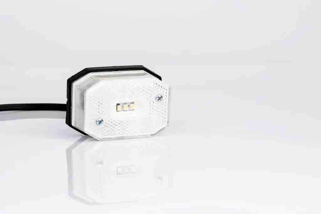 Deze LED markeringslicht uit de MV-2700 serie van Fristom is uitgevoerd in wit licht en voorzien van een geïntegreerde reflectorfunctie. Dankzij het compacte formaat van 65x42x30 mm en de robuuste polycarbonaat behuizing is dit markeringslicht geschikt voor montage op uiteenlopende voertuigtypes, zoals aanhangwagens, bedrijfswagens en speciale voertuigen. De opbouwmontage maakt een eenvoudige installatie mogelijk, met een 50 cm lange kabel en 0,75mm² connector voor directe aansluiting op een 12–24 V spanningsbereik.
