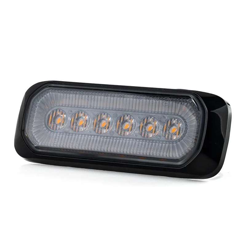 Deze LED flitser werkt op 12–24 V en is voorzien van een IP68-classificatie, wat duidt op volledige stofdichtheid en bescherming tegen langdurige onderdompeling. De flitser voldoet aan de CE-, ECE-R10-, ECE-R91- en ECE-R65-richtlijnen, waarmee elektromagnetische compatibiliteit en zichtbaarheid volgens Europese normen gewaarborgd zijn.