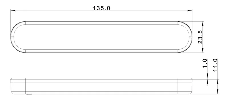 Dit LED markeringslicht uit de Fristom MV-6500 serie is ontworpen voor toepassingen in onder andere trailers, aanhangwagens en bedrijfsvoertuigen. Met een compacte afmeting van 135 x 23,5 x 11 mm en een slank profiel is dit model geschikt voor montage op locaties met beperkte ruimte. De behuizing én lens zijn vervaardigd uit slagvast polycarbonaat, wat bijdraagt aan een robuuste en duurzaam gesloten constructie.
