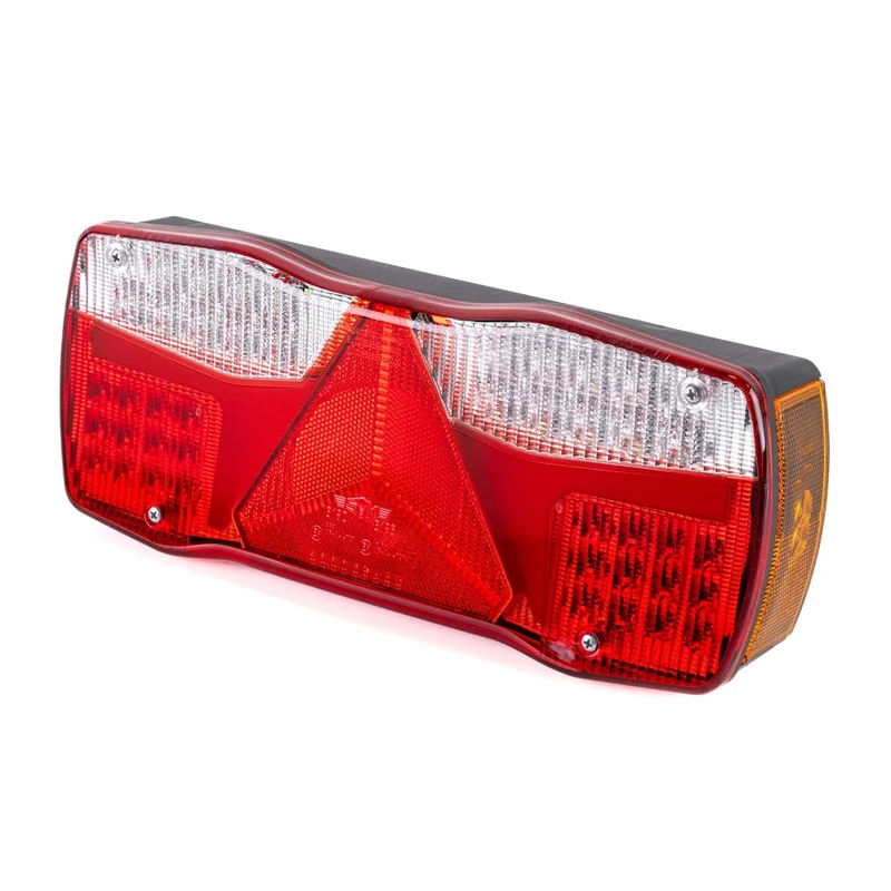 Dit LED achterlicht combineert de functies: achterlicht, remlicht, knipperlicht, dynamisch knipperlicht, mistlicht, achteruitrijlicht en kentekenverlichting. Daarnaast is het armatuur voorzien van reflector, mistlicht en kentekenverlichting volgens de opgegeven lichtfuncties. De VC-7102 voldoet aan meerdere ECE-reglementeringen, waaronder ECE-R10, R3, R4, R6, R7, R23, R38 en R91, wat de geschiktheid voor gebruik op de openbare weg onderstreept.