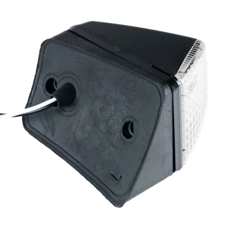 De TRALERT® MV-7100 serie omvat markeringslichten die geschikt zijn voor 24 V toepassingen, zoals vrachtwagens en trailers. Model MV-7101W is uitgevoerd in wit licht en voorzien van een open draadeind met 15 cm kabel. Deze uitvoering is specifiek ontworpen met een linkse, schuine voet voor montage op Volvo-voertuigen. De reflectorfunctie verhoogt de zichtbaarheid van het voertuig onder verschillende omstandigheden.