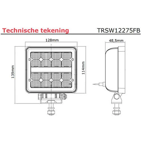 Deze LED werklamp is bestand tegen stof en water onder hoge druk dankzij de IP68-classificatie, en voldoet aan de CE- en ECE-R10-richtlijnen met betrekking tot EMC-compatibiliteit. De integratie van een 2-PIN’s Deutsch connector en 40 cm aansluitkabel maakt installatie op verschillende voertuigen eenvoudig. De montage gebeurt via opbouwbevestiging, wat flexibiliteit biedt in plaatsing.