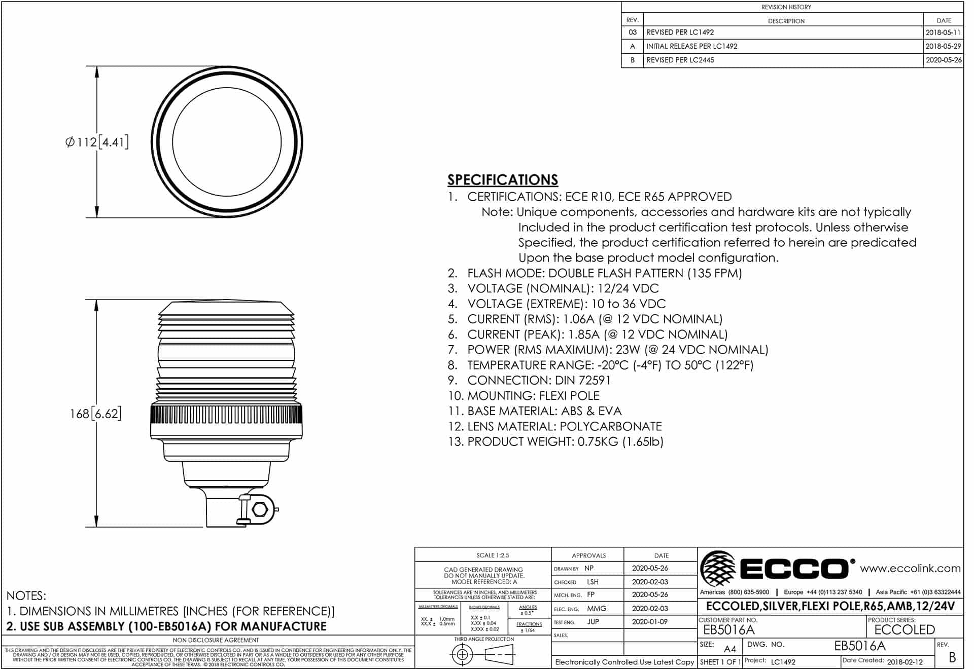De ECCO ESG EccoLED serie Silver is ontworpen als LED zwaailamp voor voertuigen die conformiteit met waarschuwingsverlichtingseisen vereisen. Dankzij de DIN-opsteekmontage is deze zwaailamp geschikt voor uiteenlopende toepassingen binnen transport, hulpverlening of industriële voertuigen. Het model realiseert 360° zichtbaarheid en voldoet aan de ECE R65-richtlijn voor waarschuwingslichten.
