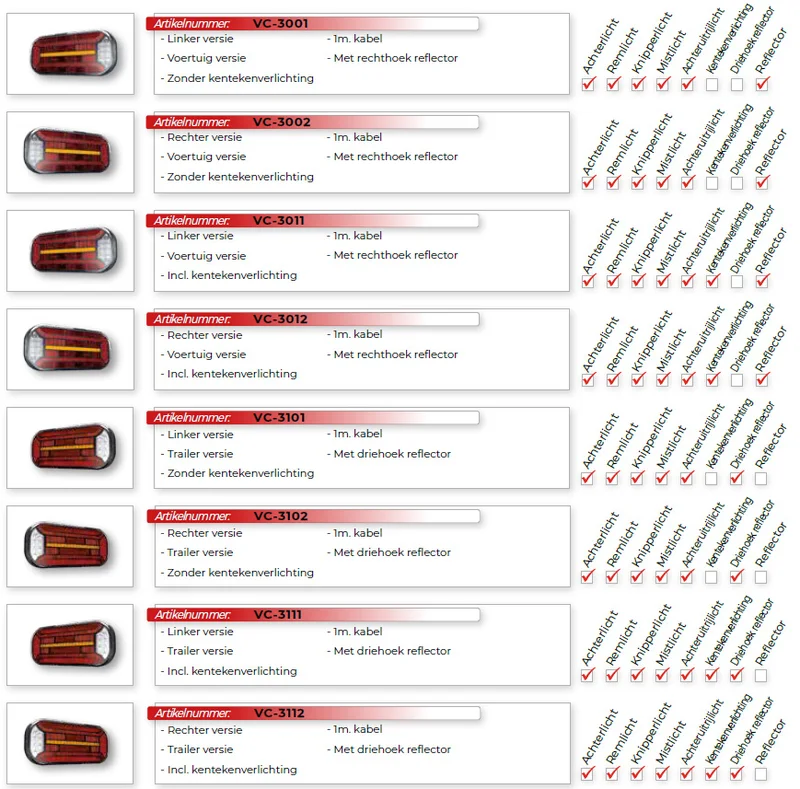 – Uniforme stijl van uw voertuigen mogelijk door variant met driehoeksreflector en rechthoeksreflector