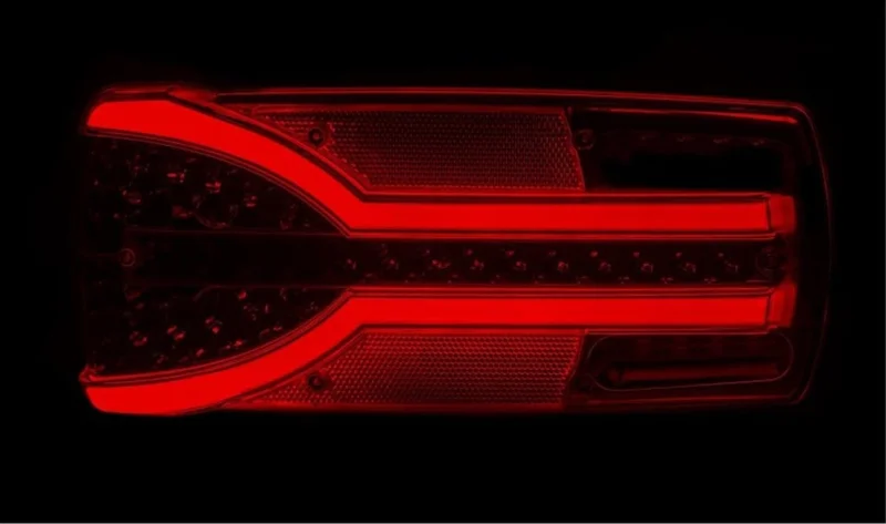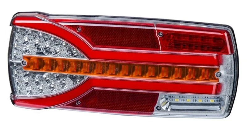 Dit LED achterlicht combineert de functies: achterlicht, remlicht, knipperlicht, dynamisch knipperlicht, mistlicht, achteruitrijlicht en kentekenverlichting. Het armatuur voldoet aan meerdere certificeringen waaronder ECE-R10, ECE-R3, ECE-R6, ECE-R7, ECE-R23 en ECE-R38, en is volledig stof- en waterdicht volgens de IP68-classificatie.