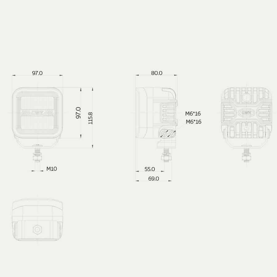 De OZZ SQR serie van het merk OZZ omvat compacte LED driving lights, ontwikkeld voor professioneel gebruik in uiteenlopende voertuigtoepassingen. Dit model is voorzien van een vierkant ontwerp met een afmeting van 97x97x50 mm en levert een lichtopbrengst van 7.200 lm bij een spanning van 12–24 V. De combinatie van amber- en witkleurige verlichting maakt dit armatuur geschikt voor verschillende situaties waarin zichtbaarheid en signalering vereist zijn.