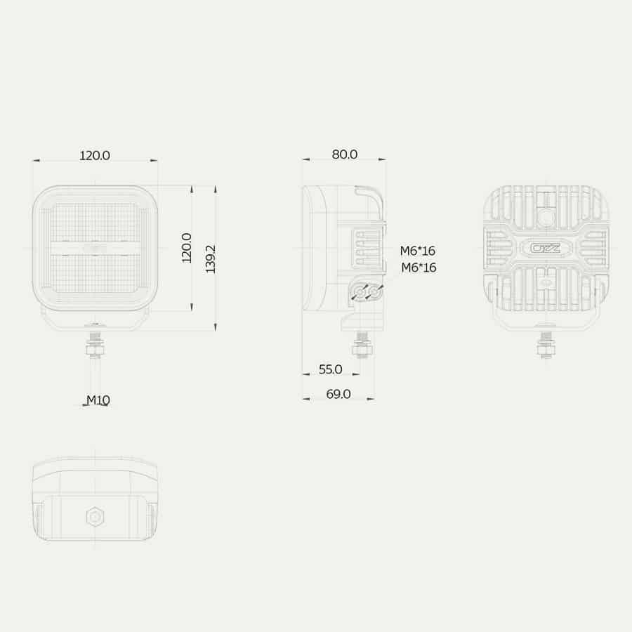 Met een robuuste aluminium behuizing en een slagvaste polycarbonaatlens is deze vierkante werklamp geschikt voor zware werkomgevingen. Dankzij de IP69K-classificatie is de lamp volledig bestand tegen stof en hogedrukreiniging. Bovendien voldoet het product aan de ECE R10, ECE R148 en ECE R149 richtlijnen, wat de elektromagnetische compatibiliteit en verkeersreglementaire toepasbaarheid waarborgt. Aansluiting geschiedt via een 4-PIN’s Deutsch connector met geïntegreerde 100 cm kabel.