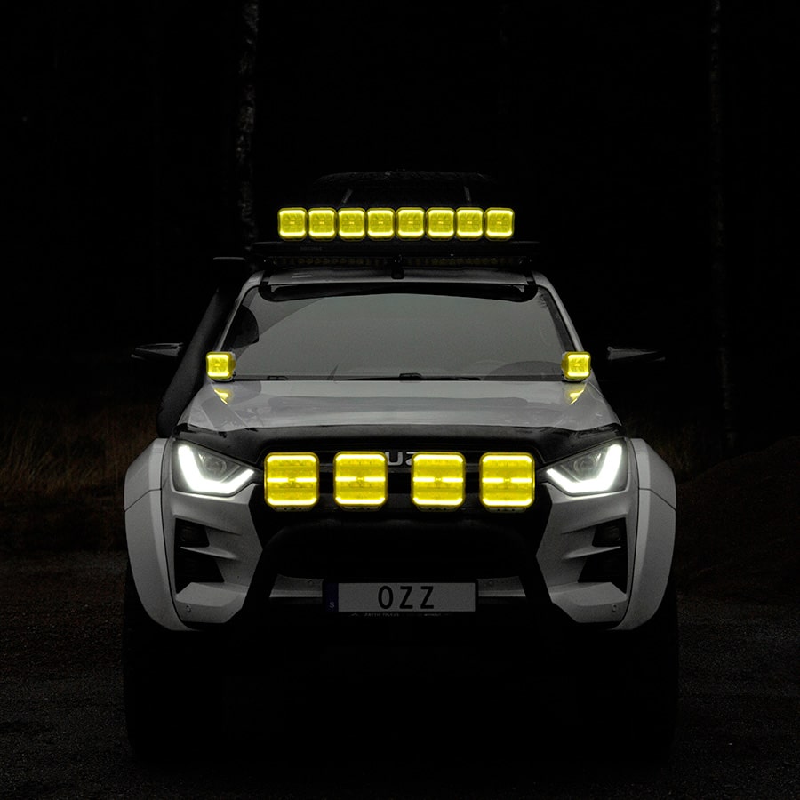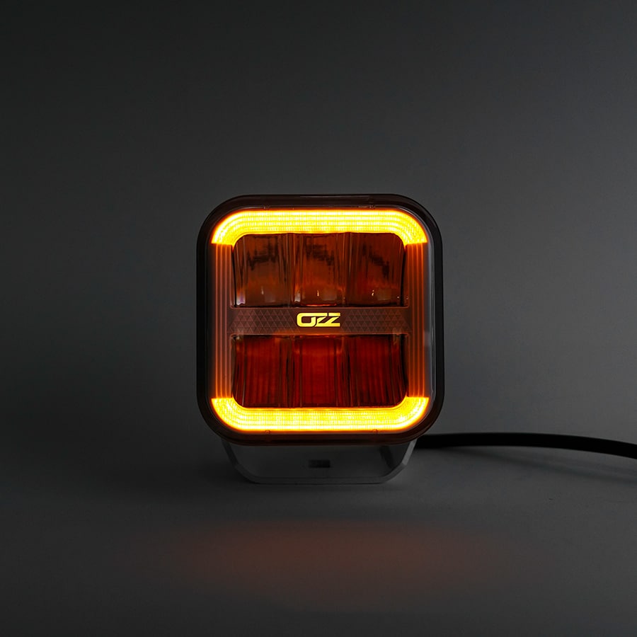 De lamp levert een lichtopbrengst van 7.200 lm in amber en wit lichtkleur. De aluminium behuizing en polycarbonaat lens zorgen voor een robuuste constructie, geschikt voor intensief gebruik. De OZZ SQR-serie voldoet aan de vereisten van CE, ECE R10, ECE R148 en ECE R149 en beschikt over een IP69K-classificatie voor maximale bescherming.