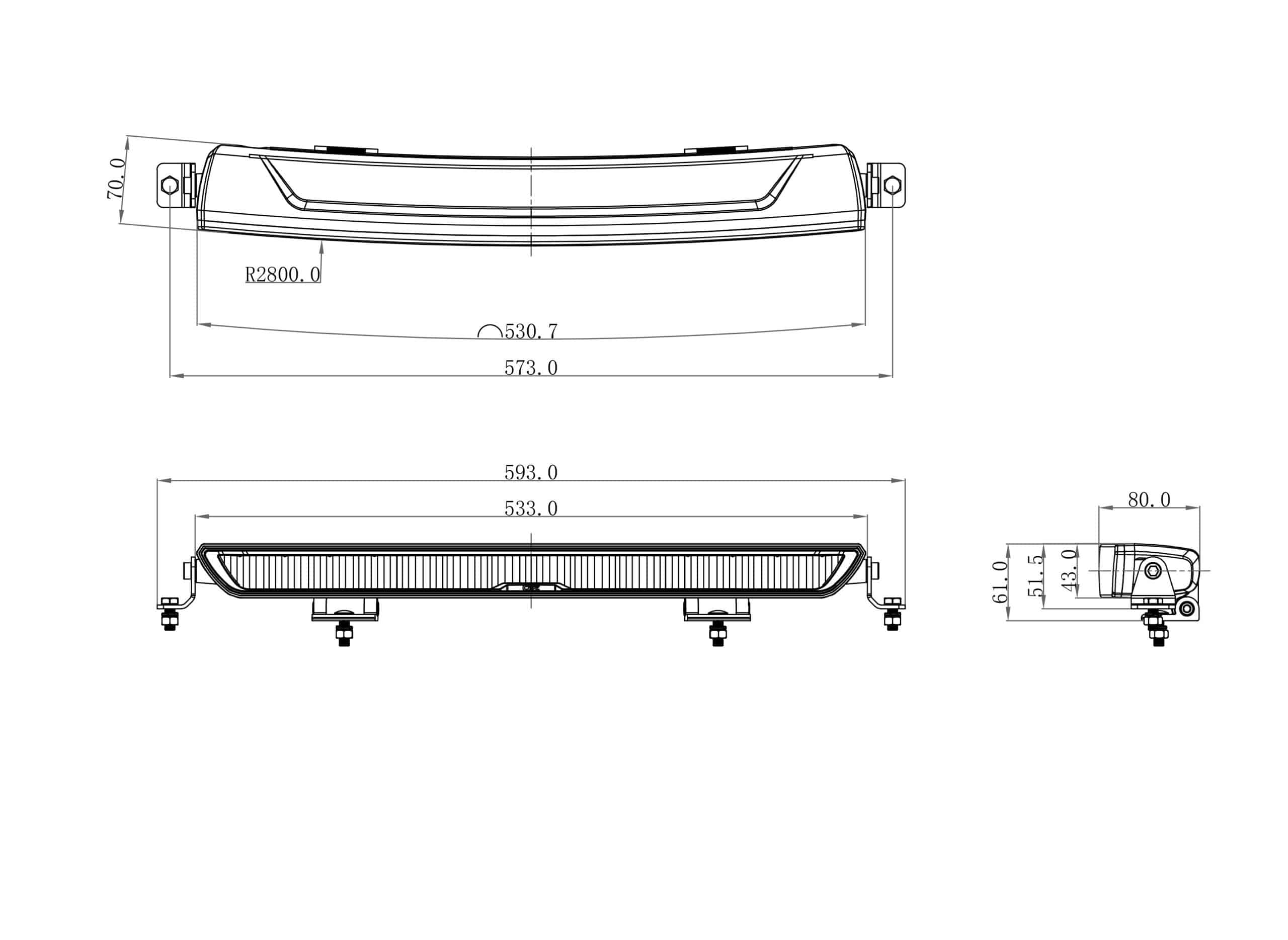 Het slanke ontwerp van 544x50x70 mm gecombineerd met een robuuste aluminium behuizing en een slagvaste polycarbonaat lens maakt dit product geschikt voor intensief gebruik. De IP69K-classificatie garandeert bescherming tegen stof en hogedrukreiniging. Aangesloten via een 3-PIN’s Deutsch connector en voorzien van 100 cm kabel, is installatie vereenvoudigd. De OZZ XB serie voldoet aan CE-, ECE-R10- en ECE-R148-richtlijnen, wat toepassing op de openbare weg onder voorwaarden mogelijk maakt.
