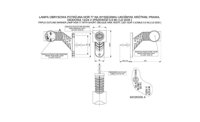 De Horpol MB-4762RWA uit de MB-4700 serie is een LED breedtelamp met een combinatie van rood, wit en amber licht. Deze breedtelamp is geschikt voor toepassing op voertuigen binnen een 12–24 V systeem en heeft een open draadeind met 50 cm kabel voor directe montage. De robuuste rubberen behuizing en slagvaste polycarbonaat lens maken de lamp bestand tegen intensief gebruik.