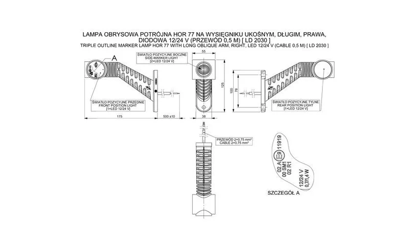 Deze LED breedtelamp combineert de functies: achter markerlicht en zij markerlicht. De zichtbare lichtkleuren rood, wit en amber zorgen voor markering rondom. De IP68-classificatie biedt volledige stofdichtheid en bescherming bij langdurige onderdompeling. De lamp is conform CE, ECE-R10, ECE-R7 en ECE-R91 gecertificeerd, wat aanduidt dat deze voldoet aan de relevante voertuigverlichtingsnormen binnen Europa.