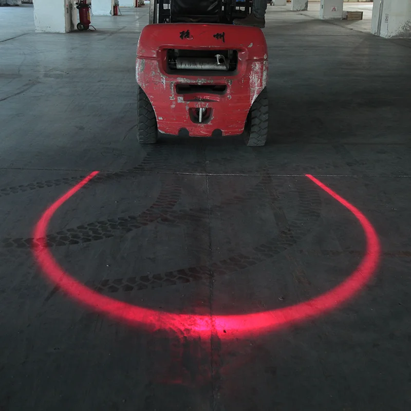 Veilig in uw logistiek centrum werken? Bekijk dan snel deze RED semi-circle veiligheidslamp. De boog wordt duidelijk geprojecteerd op de vloer en draagt zo bij aan een veilige werksituatie.