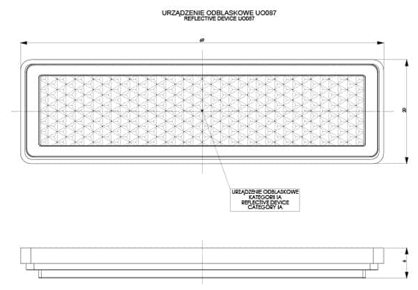 Dankzij de plakmontage is installatie eenvoudig uit te voeren op een vlakke, geschikte ondergrond. De reflector voldoet aan de CE- en ECE-R3-keuringseisen, wat de inzetbaarheid in gecertificeerde verkeersomstandigheden ondersteunt. Deze reflector bevat geen geïntegreerde lichtfuncties.