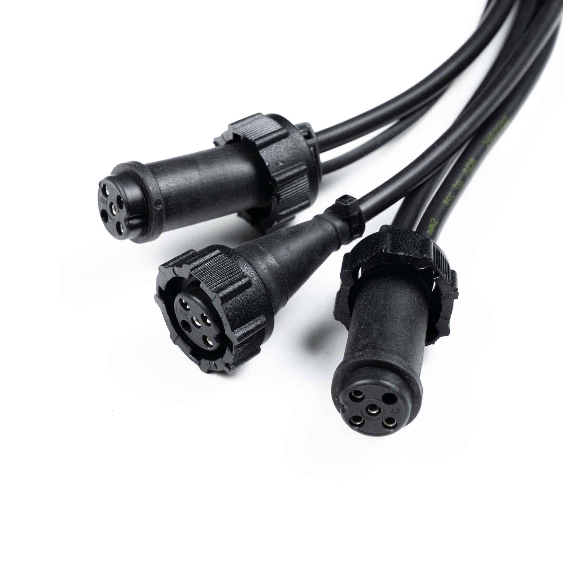 Deze aansluitkabel van het merk TRALERT® is ontworpen voor gebruik op voertuigen met een 24 V-spanningsbereik, zoals trucks en trailers. Het betreft een Y-kabel die geschikt is om vier achterlichten te verbinden en maakt gebruik van een 5-PIN’s bajonetconnector. Hierdoor kunnen meerdere achterlichten efficiënt en betrouwbaar worden aangesloten binnen een bestaand verlichtingssysteem.
