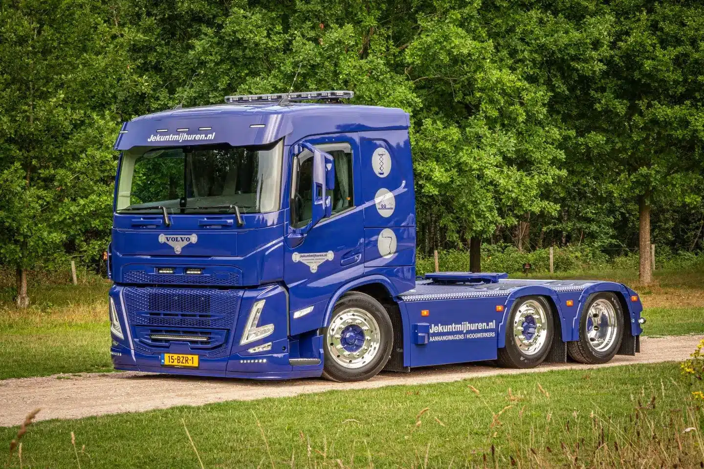 Voor jekuntmijhuren.nl is deze Volvo FM een opvallende verschijning binnen de vloot, waar normaal gesproken vooral DAF en Scania de boventoon voeren. De FM-trekker met twee-assige citytrailer wordt ingezet voor het transport van verhuurmachines en heeft toegang tot de milieuzones. Dat maakt de combinatie bijzonder geschikt voor klanten die in stedelijke gebieden actief zijn.