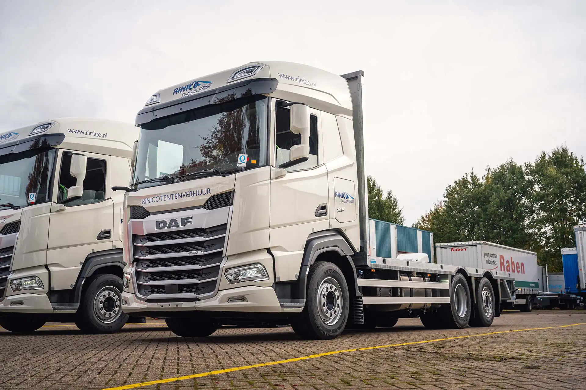 Voor een klant verzorgde Van Wees Trailer Service B.V. de volledige carrosseriebouw, inclusief LED verlichting van TRALERT®, van twee nieuwe DAF trucks.