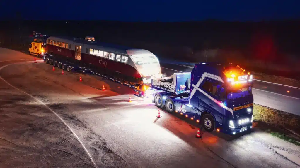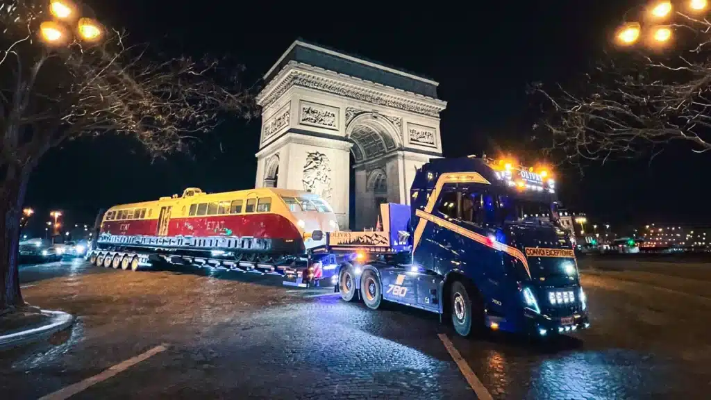 Na de aflevering van de Volvo FH16 aan Transports Olivry stond de truck direct een bijzondere opdracht te wachten: het transport van de Bugatti ‘Le Présidentiel’ Type 41. Dit is het enige overgebleven exemplaar van de ingenieuze hogesnelheidstrein uit de jaren ’30, een technisch meesterwerk dat in zijn tijd al snelheden tot 200 km/u op het spoor haalde.